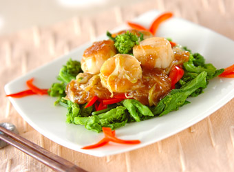 たんぱく質やカルシウム、ビタミン、鉄分や豊富なミネラルが含まれているホタテのソテー。