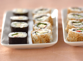 巻き寿司をひとくち大に切り、器に盛り合わせる。