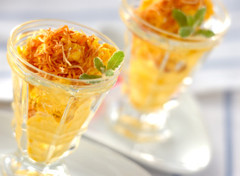 器に盛り分け、ココナッツロングをのせ、ミントの葉を添える。
