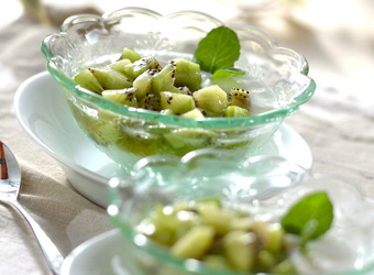 ③器にヨーグルトを入れて②の<キウイソース>をかけ、ミントの葉を添える。