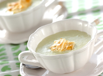 美肌効果があると言われている「ソラ豆」に、タンパク質やイソフラボンが豊富な大豆食品の「豆腐」と「豆乳」を使って、トリプル美肌効果のある、淡いグリーンの優しい春色スープです。