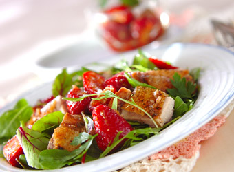 器にベビーリーフと(4)の鶏肉ソテーを盛り合わせる。