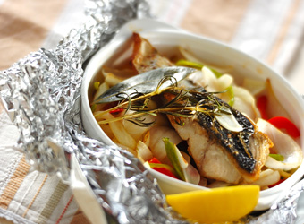 塩コショウで味付けしたサワラにハーブをのせ、野菜と一緒にホイルで包んで、予熱したオーブンで焼くだけの簡単レシピです。バターでコクをプラスしているので、レモンをギュッと絞って頂きましょう!
