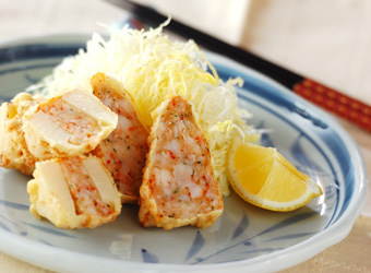 タケノコに、サッパリ淡泊なエビをたたいたものを加え、季節の木の芽の風味をプラスした、春満載の揚げ物です。