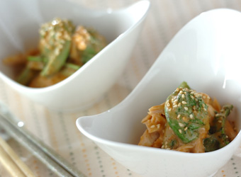 コゴミは、食べやすいように軽く塩ゆでにして、優しい味のゴマみそマヨダレで和えていただきましょう。
