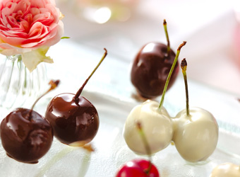 チェリーのかわいい形を活かすために、生のままのチェリーにキルシュ風味をつけて、チョコレートでコーティングしました。